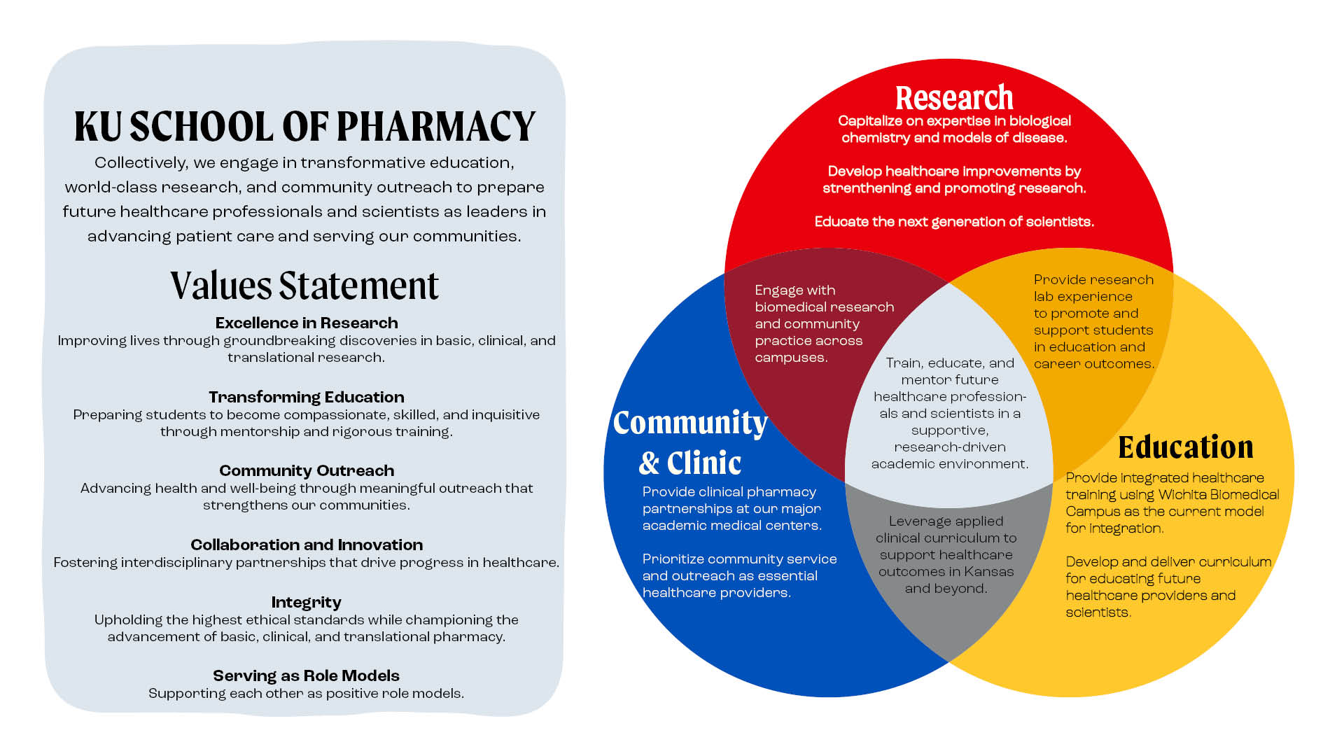 The University of Kansas School of Pharmacy advances health through integrated excellence in education, research, and community engagement.